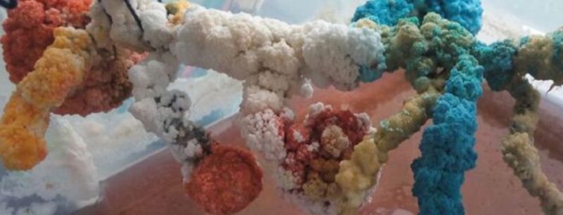 Keitä 1 litra vettä ja liuota siihen 400 g jodioitua suolaa. Upota narusta tai kankaasta tehty hahmo liuokseen, aseta lämpimään aurinkoiseen paikkaan ja odota päiviä tai viikkoja, kunnes kiteet muodostuvat.
